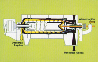 La centrífuga decantadora, es el único modelo apto para procesos en donde se tiene una concentración de sólidos significativa en la suspensión a tratar. Por eso es que el uso de la decantadora es apropiado para aquellas aplicaciones en las cuales se desea separar una fase sólida de una liquida, por medio de la fuerza centrífuga; donde al mismo tiempo alcanza altos niveles de clarificación del concentrado liquido. Para obtener tal separación, es necesario que las partículas sólidas tengan una densidad superior a la fase liquida.