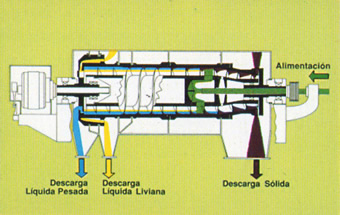 Diseñada para la separación de productos que contengan 3 (tres) fases, de diferentes densidades, por ejemplo: un sólido, agua y aceite. Ejemplos de aplicación: efluentes industriales, subproductos animales, grasas de lana, etc.